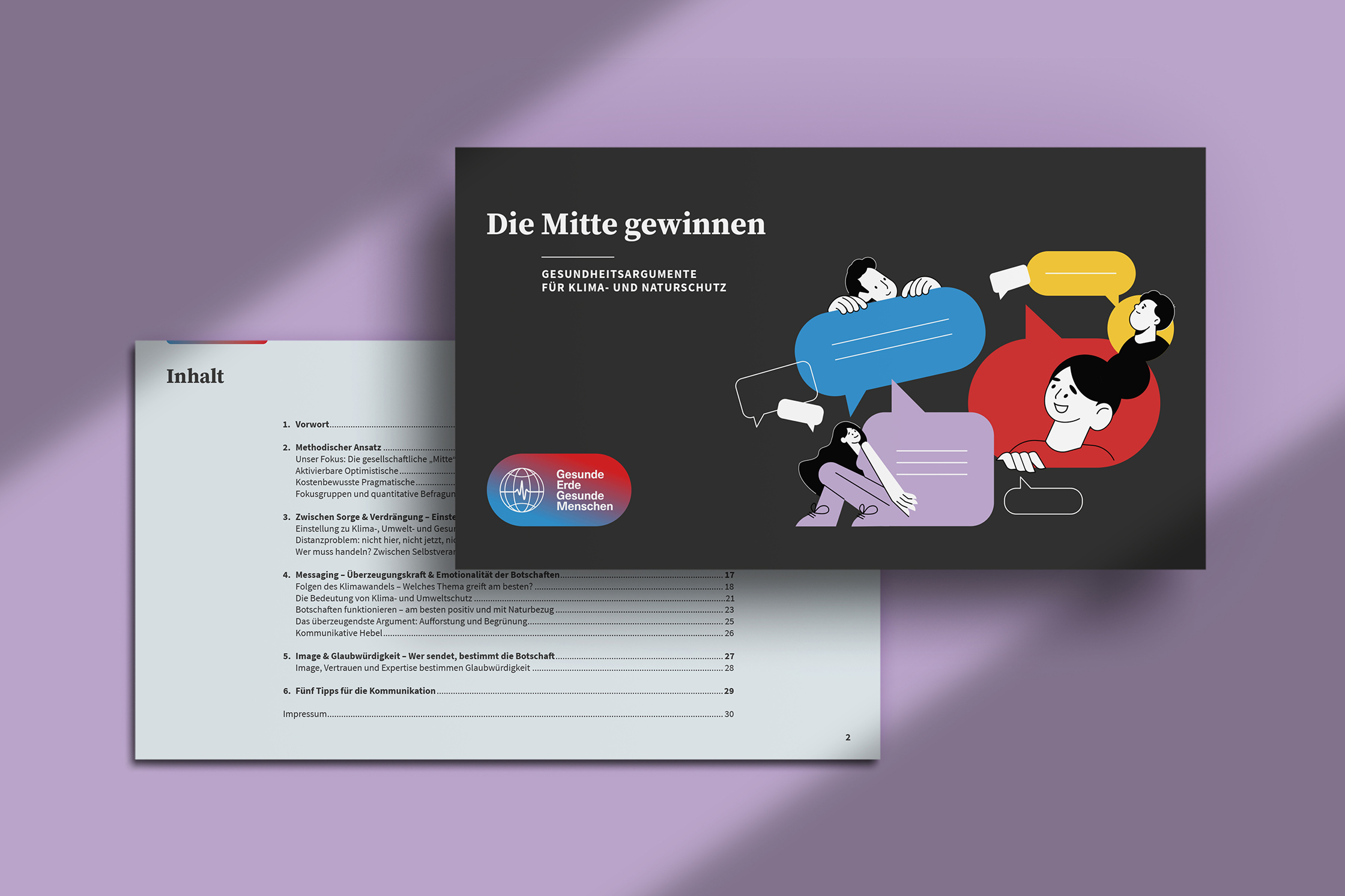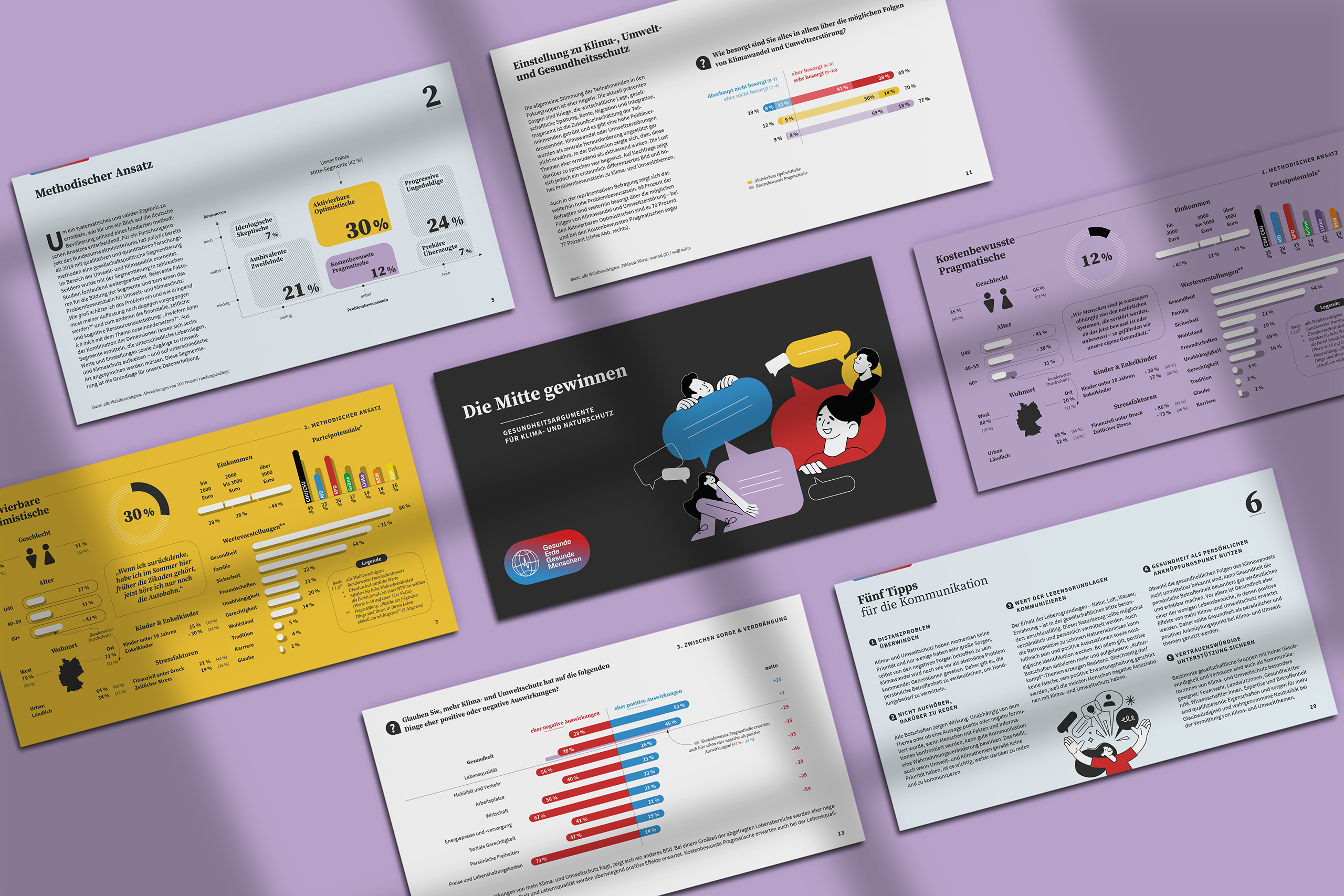 Von der Stiftung Gesunde Erde – Gesunde Menschen waren menschenskinder mit dem Layout sowie der Konzeption und Gestaltung von Infografiken zur Studie „Die Mitte gewinnen – Gesundheitsargumente für Klima- und Naturschutz“ beauftragt.
